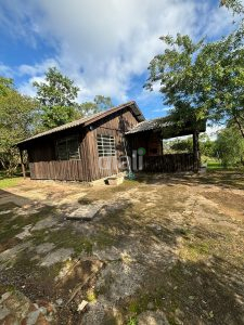 QUIOSQUE COM ÁREA DE LAZER, UM QUARTO, BANHEIRO, COZINHA, CHURRASQUEIRA.